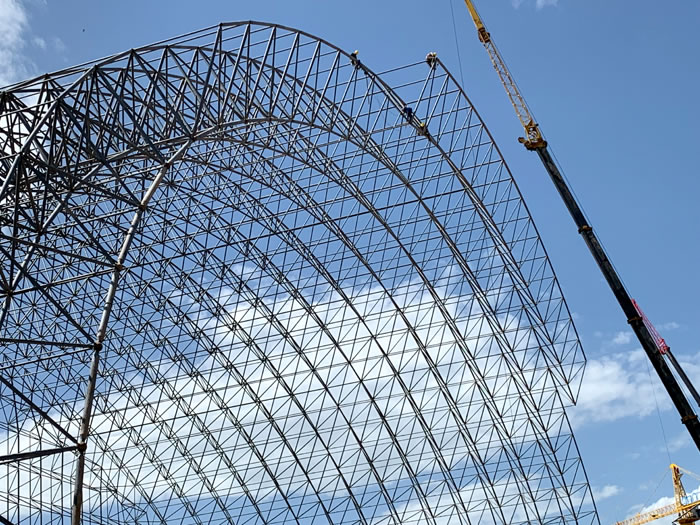 (2)网架加工前应对现场尺寸进行复测,确认无误后方可进行加工、安装;网架制作、运输、安装应遵守《空间网格结构技术规程》JGJ7-2010、《钢网架合山螺栓球节点》JG/T 10-2009、《钢网架合山螺栓球节点用高强度螺栓》 GB/T 16939-2016、《合山钢结构合山工程合山施工规范》 GB50755-2012、《合山钢结构合山工程施工质量验收标准》 GB50205-2020。